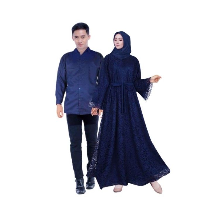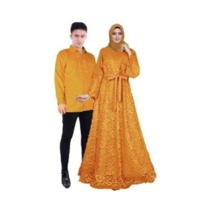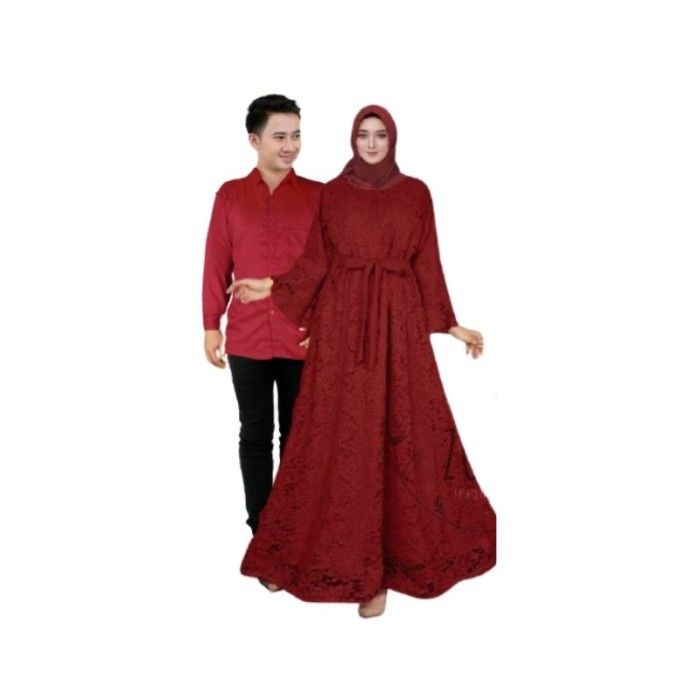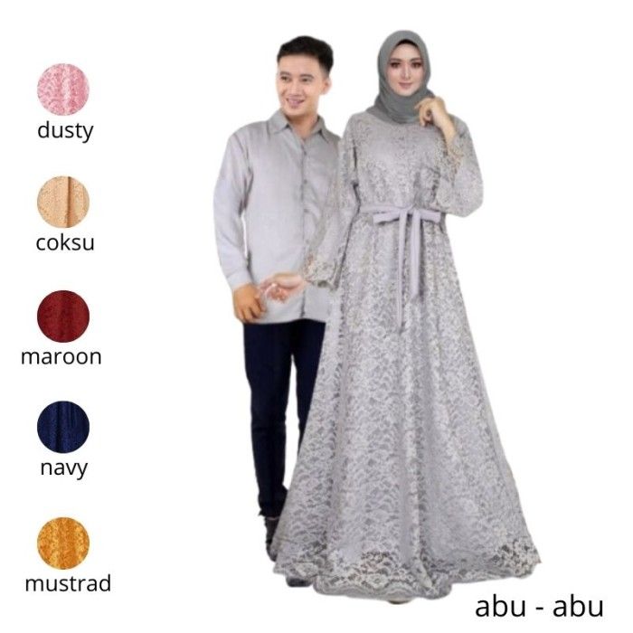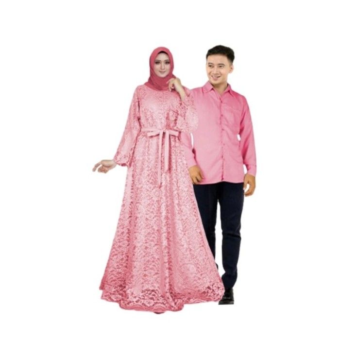 Gamis Brukat Couple Gamis Brukat Pasangan - Couple Marisa - Size mili XL XXL - - Dusty Pink cowo XL cewe XL