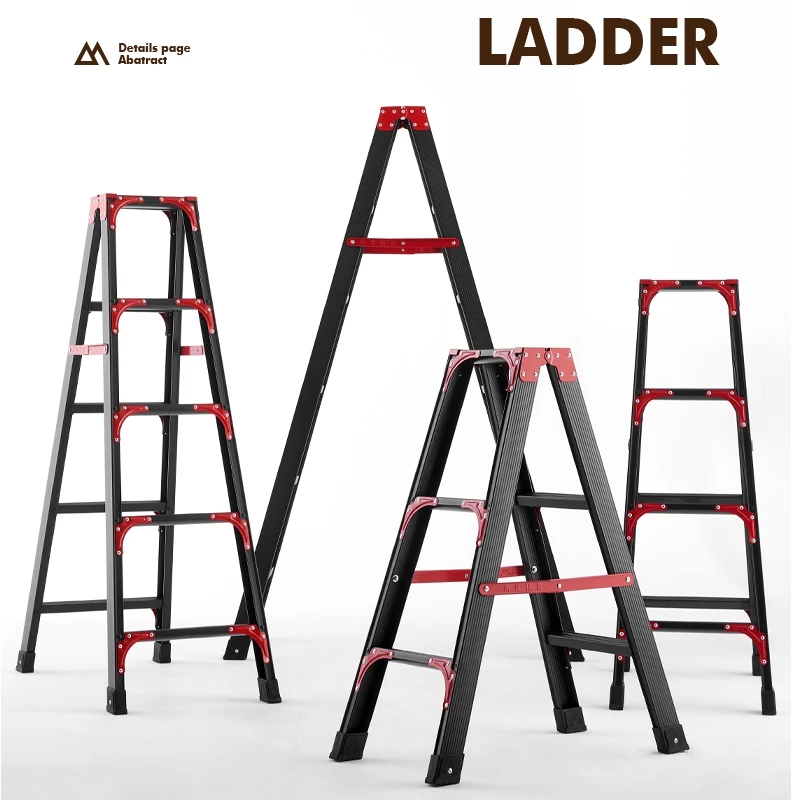 Tangga lipat kuat Engsel Jumbo Ukuran1,2/1,5/1,8/2,1Meter Bahan Baja/Kokoh Tebal Kuat Hitam Multifunction Household Ladd