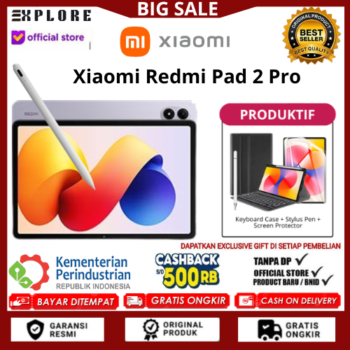 official store 🔥 Xiaomi Redmi Pad 2 Pro Free pen & Keyboard Type IPS LCD, 1B colors, 120Hz, Dolby Vision, 600 nit RESMI