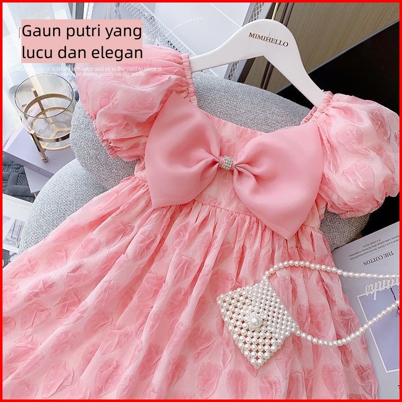Without Bag2-6 Tahun Gaun Gadis 23 Tahun Gaya Asing Baru Musim Panas Anak-anak Gadis Kecil Engah Lengan Busur High-end R