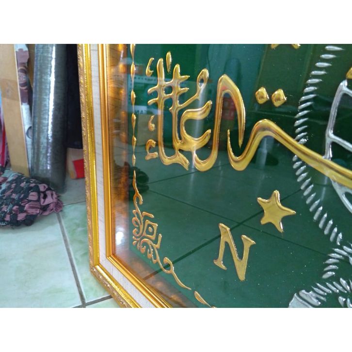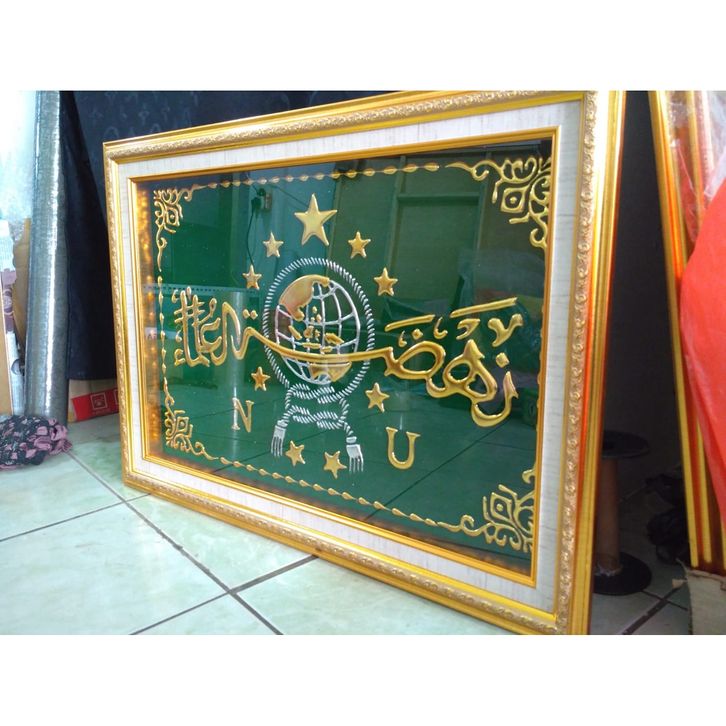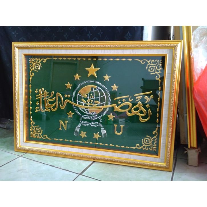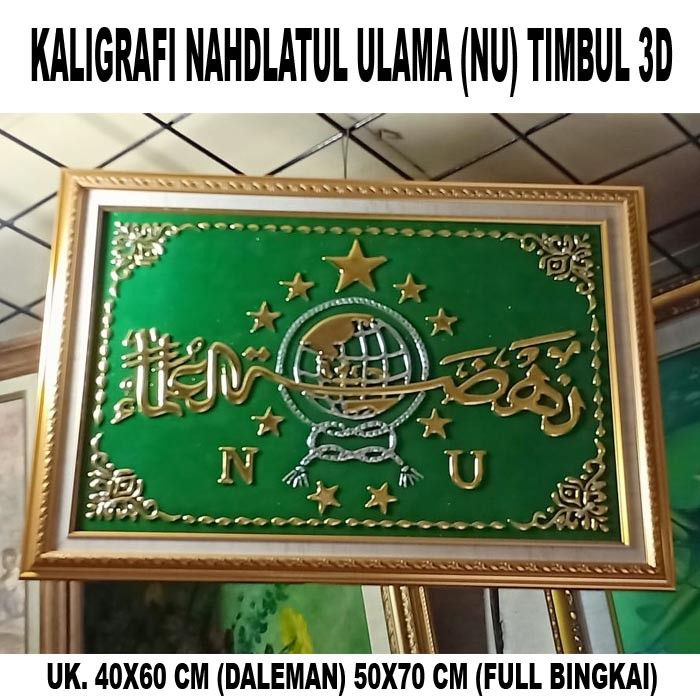 KALIGRAFI NAHDLATUL ULAMA (NU) TIMBUL 3D UKURAN 50X70 CM FULL BINGKAI KACA