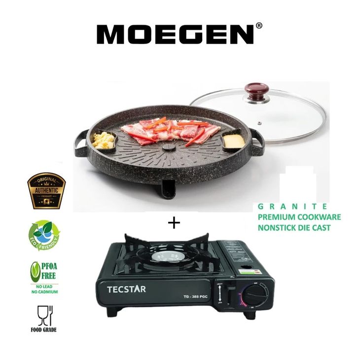 MOEGEN Bulgogi Pan ALL NEW 32cm Grill BBQ + Tutup Kaca + Kompor Portable