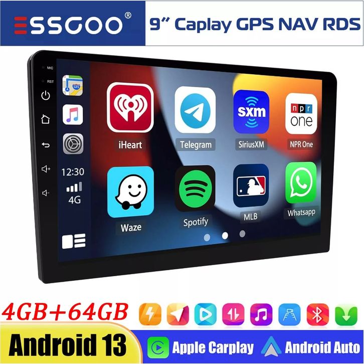 ESSGOO Head Unit Android 13 4G+64G 7/9/10 Inch 2 Din IPS Layer Wifi Bluetooth Mirror Link GPS AUX FM