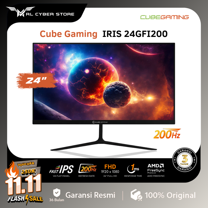 CUBE GAMING IRIS 24GFI200 23.8" FHD IPS Frameless 200Hz Gaming Monitor with AMD FreeSync & G-SYNC (HDMI + DP)