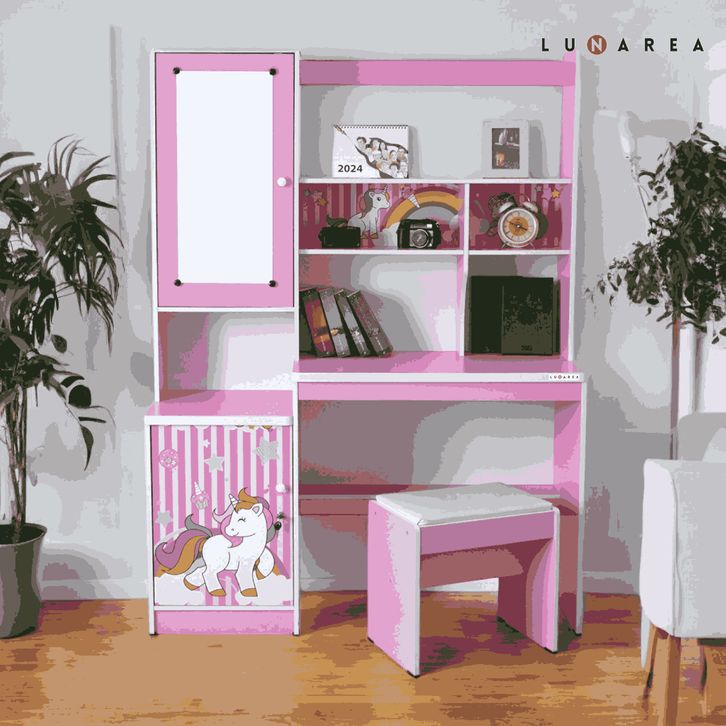 Meja Tulis Meja Belajar Meja Rias Set Meja Kursi Minimalis Dengan Lemari dan Laci Penyimpanan Furniture MB MR 168