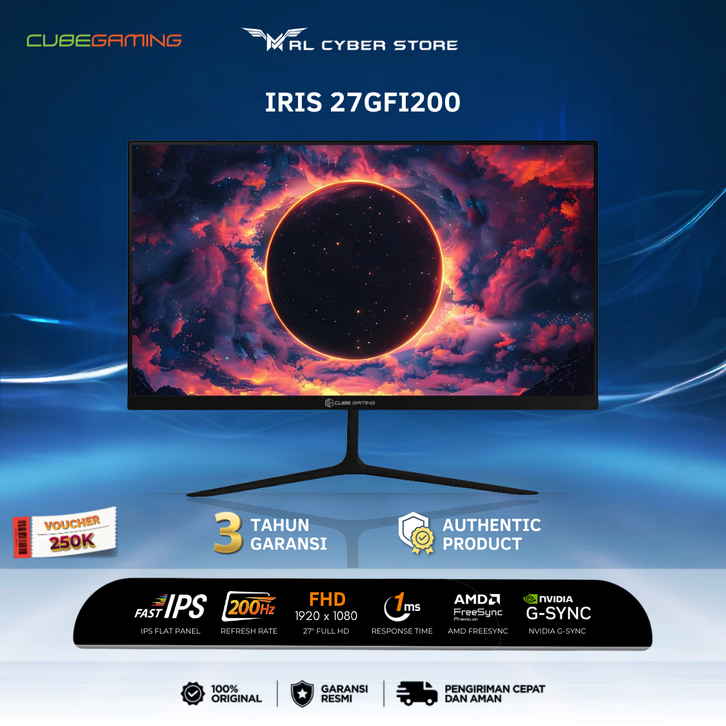 CUBE GAMING IRIS 27GFI200 27" FHD IPS Frameless 200Hz Gaming Monitor with AMD FreeSync & G-SYNC (HDMI + DP)