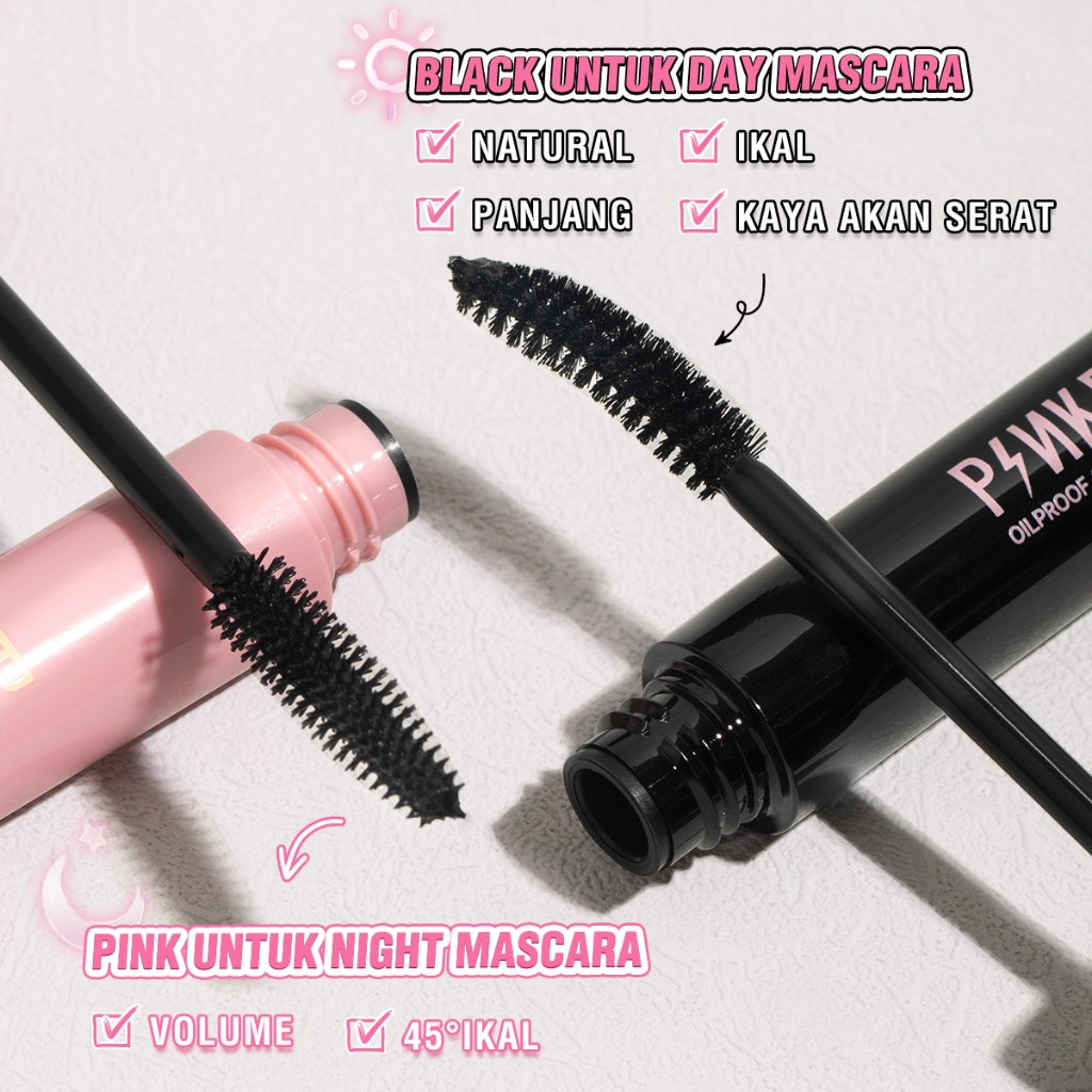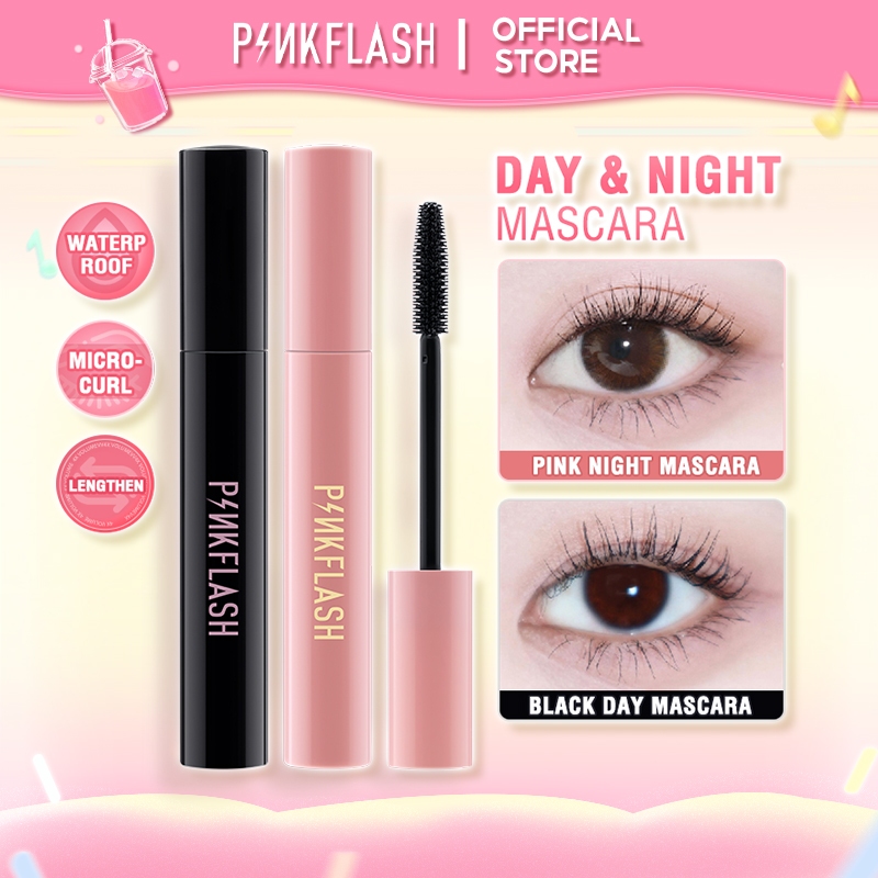 PINKFLASH Day & Night Maskara Lengthening Volume Tahan air Tahan lama Mascara