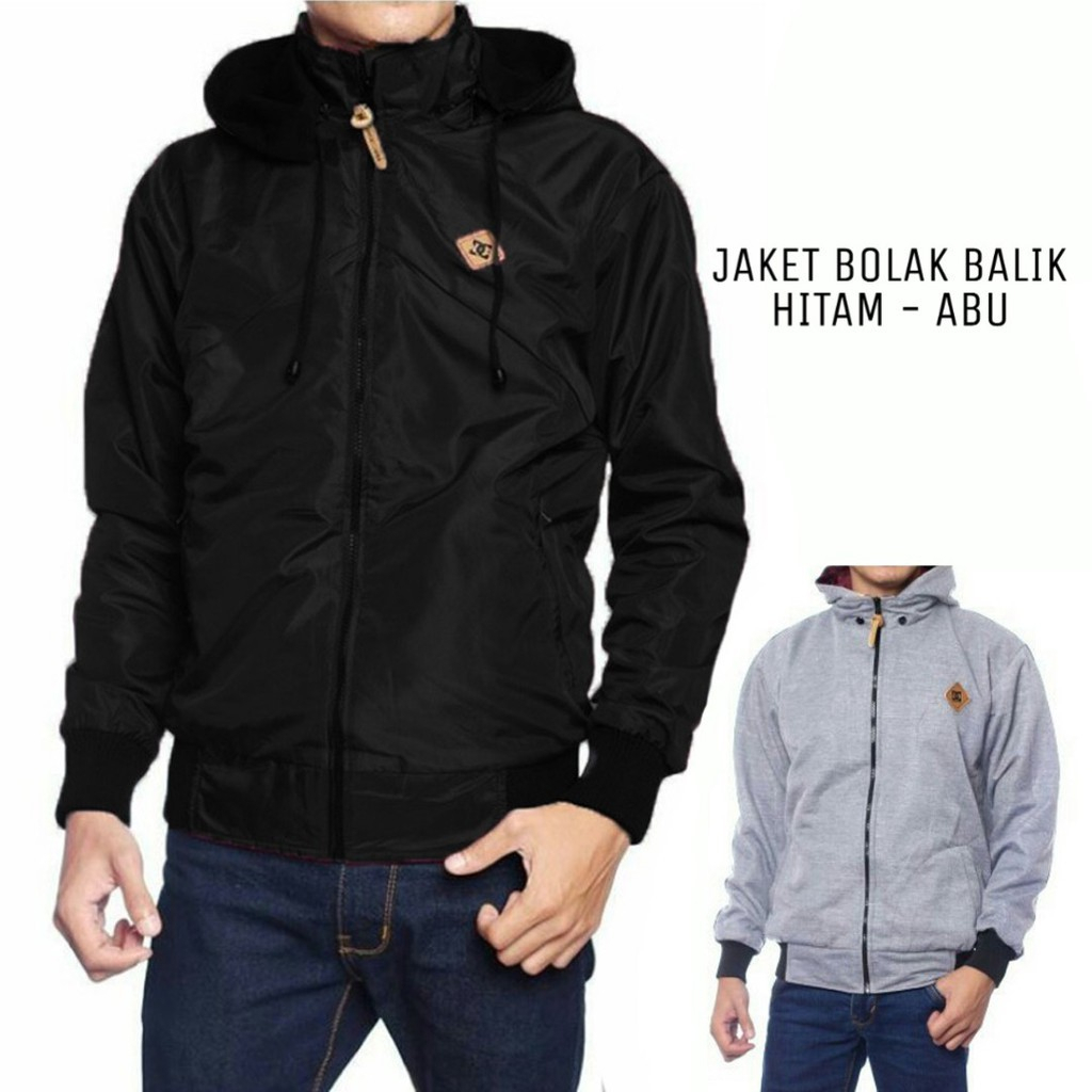 JAKET BOLAK BALIK PRIA BB 2in1 PARASUT ANTI AIR FLEECE SIZE M L XL
