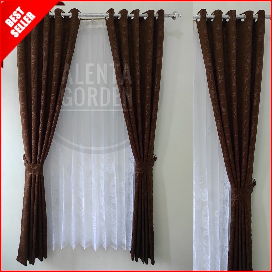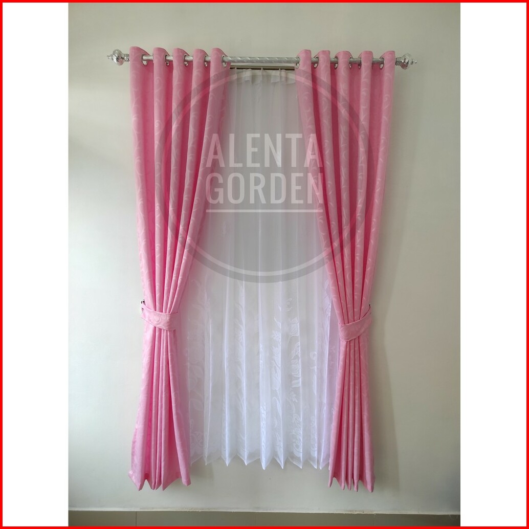 Gorden Jendela Minimalis Pintu Kamar Motif Bunga Tirai Gordyn Smokring Warna Pink Muda