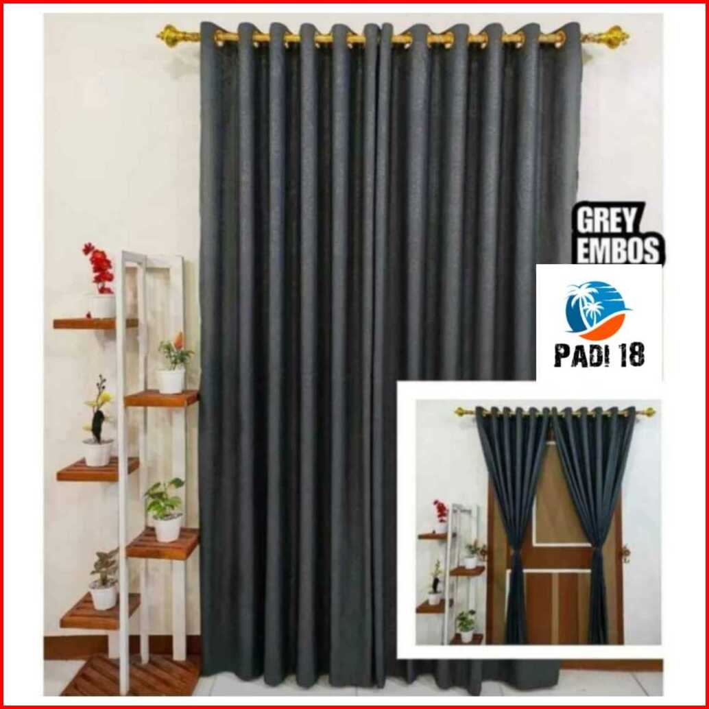 Tirai Pintu Dan Gorden Jendela Polos Embos Lillac Smokering Hordeng Lubang Korden Warna Ungu Abu Tua