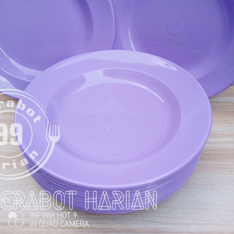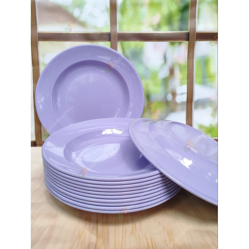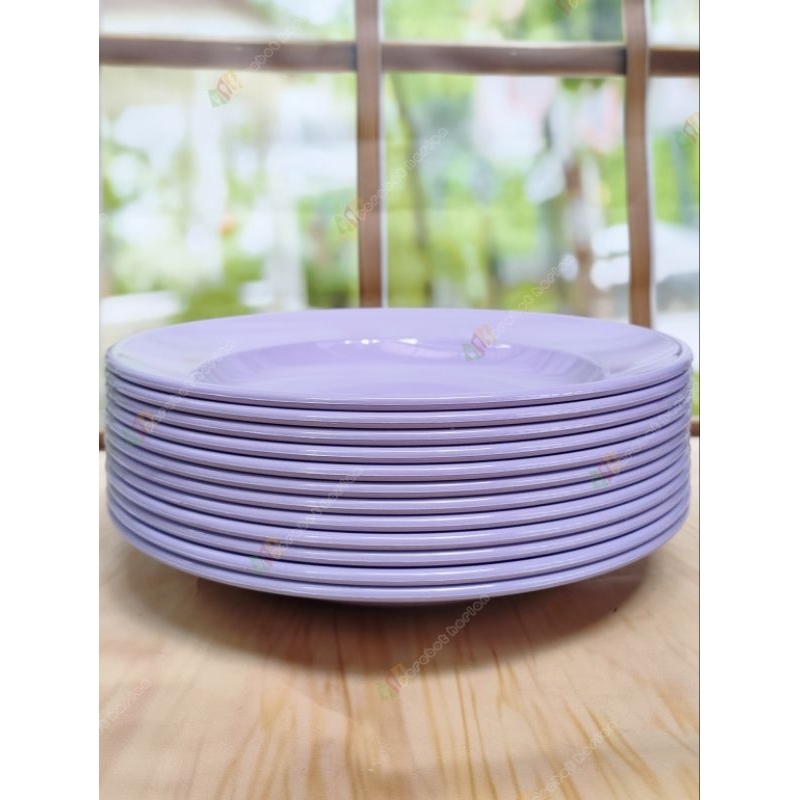 12pcs piring makan bulat ungu polos 23CM 9INC melamine original diner ware MJ food grade SNI tebal kuat tahan panas berk