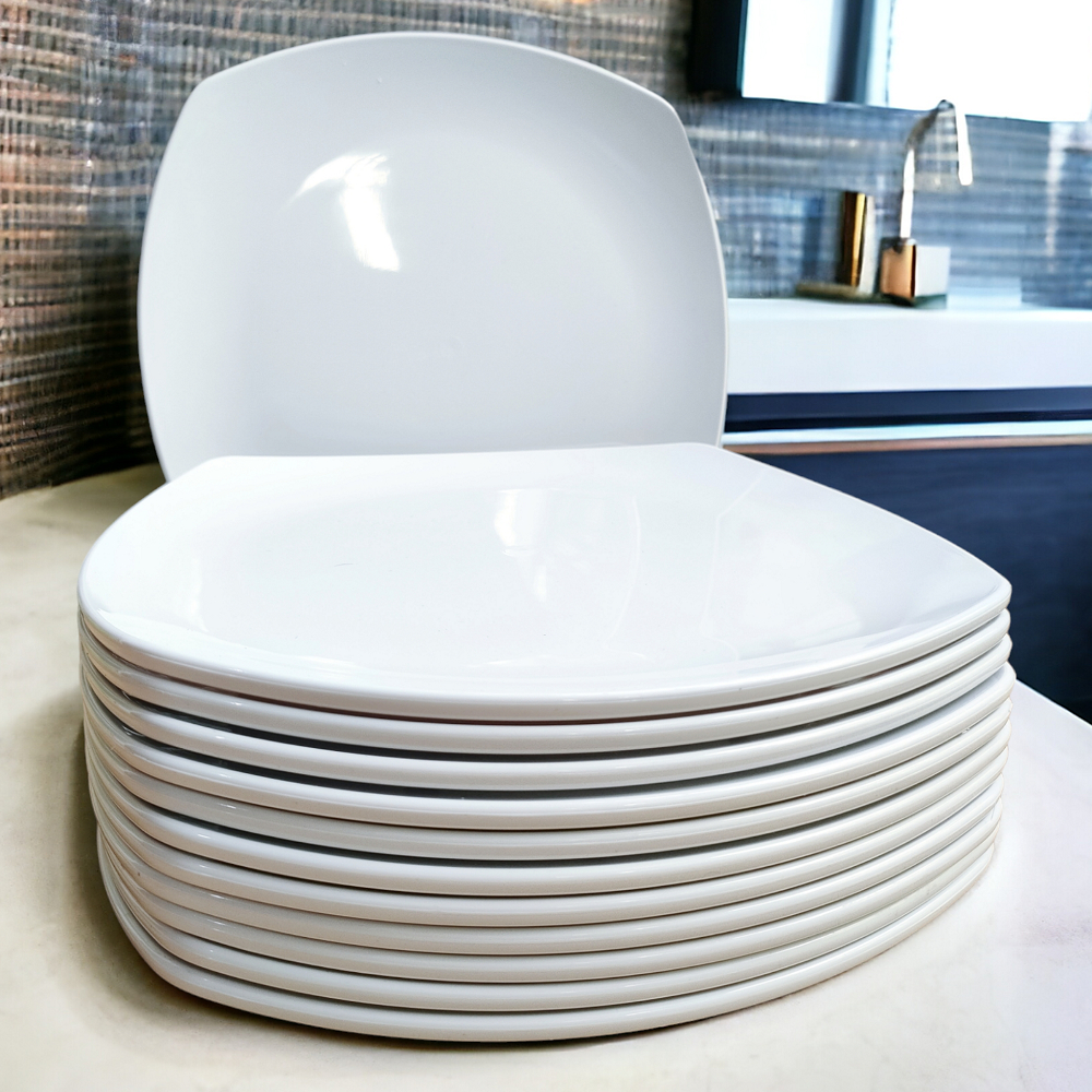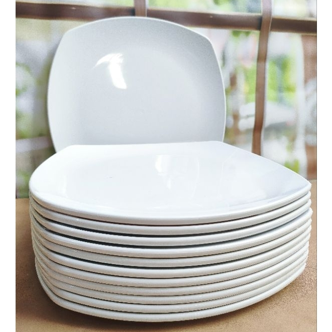 12PCS Piring Makan Petak Saji Tebal Putih Polos Melamine Terlaris