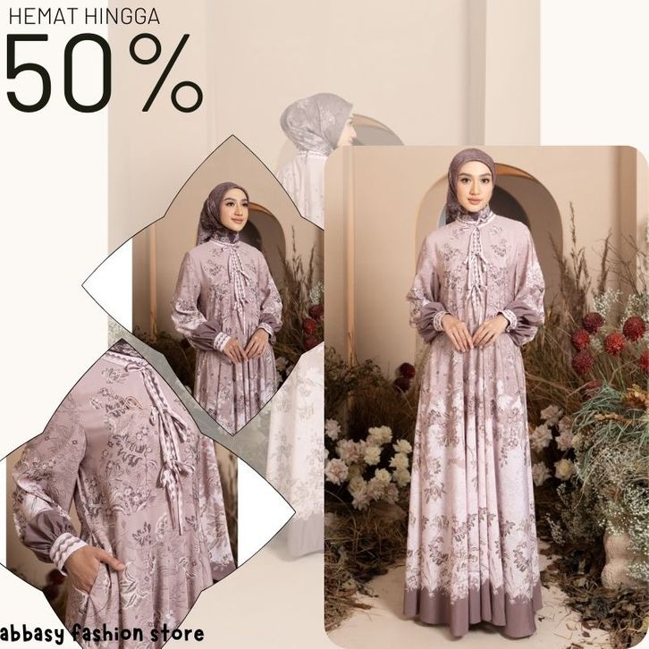 Gamis Wanita Kekinian Klamby Semantik Dress Muslim Cewek Antique Shell Terbaru 2025 Lebaran Import Remaja