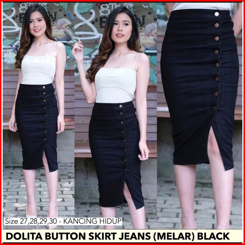 Realpic Dolita Button Skirt Jeans Rok Jeans Wanita
