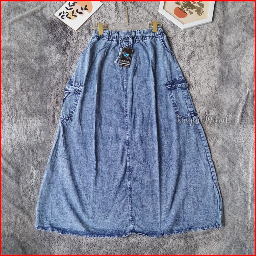 Vonny Skirt Jeans Pocket Rok Cargo Jeans Wanita