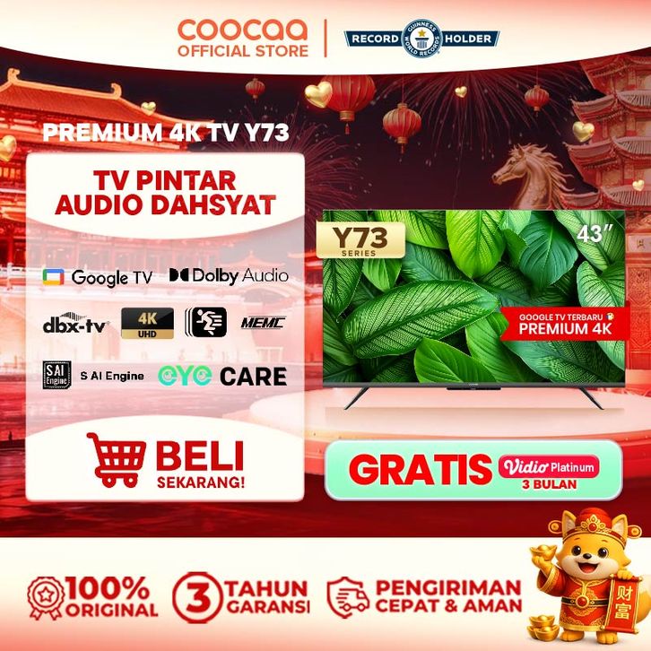 TERBARU COOCAA TV 43 inch Y73 - 4K Google TV - S AI Engine - MEMC - HDR10 - Find My Remote & Far Field (COOCAA 43Y73)