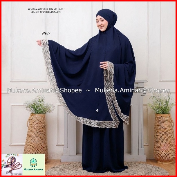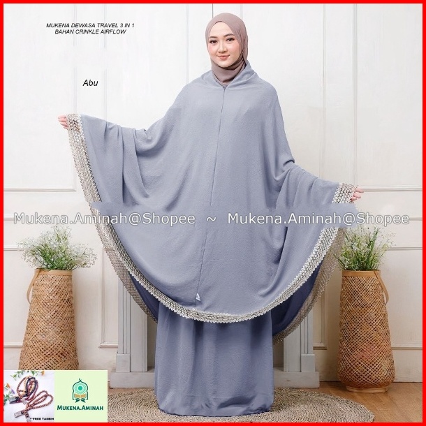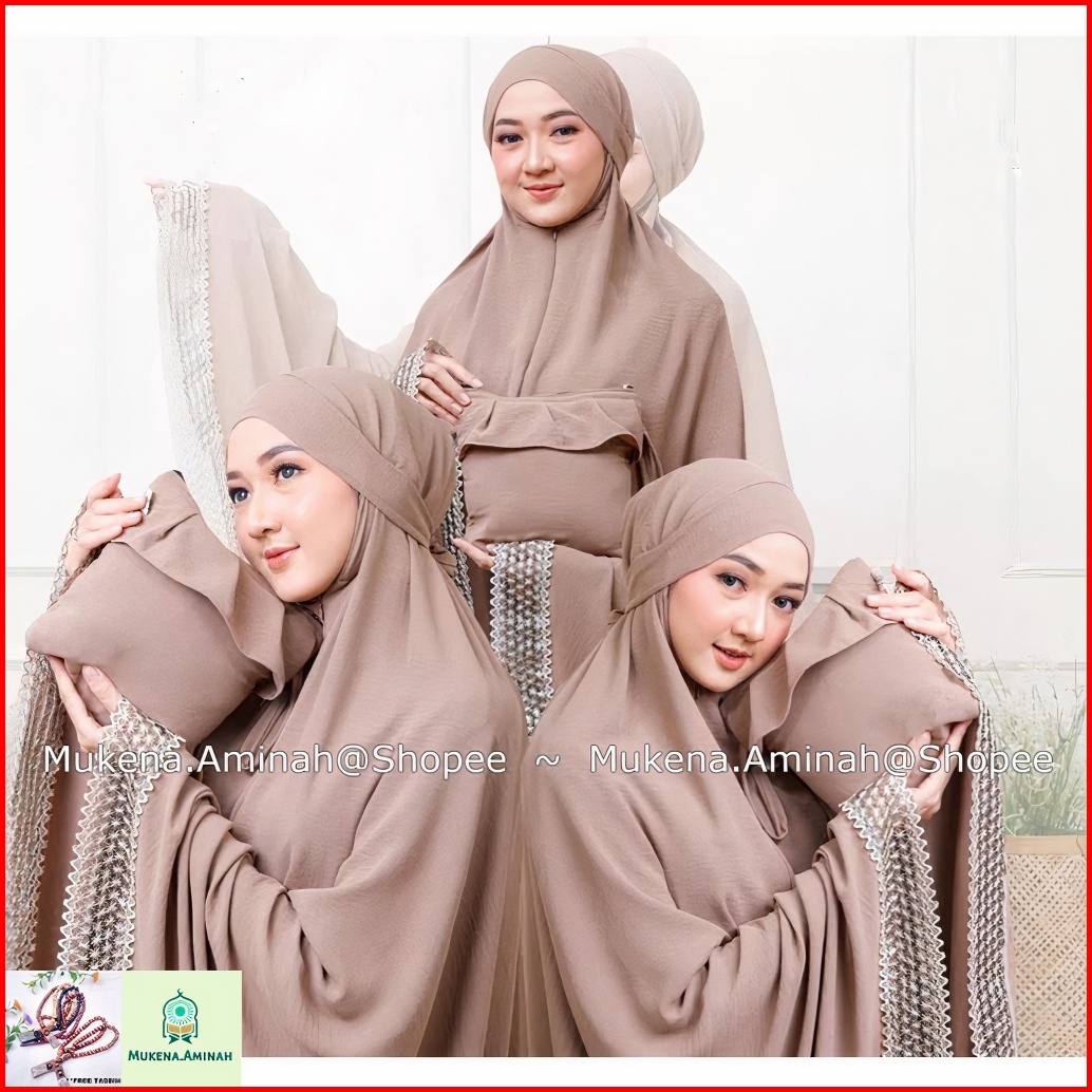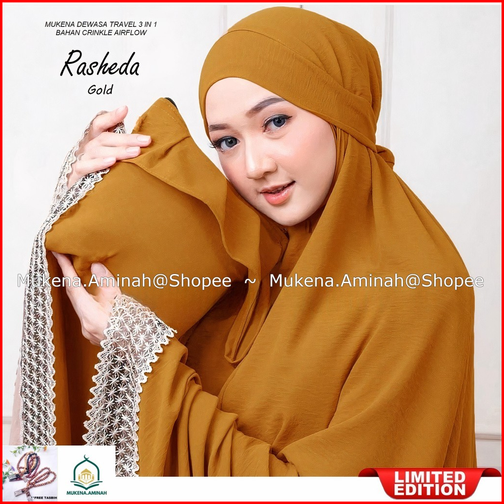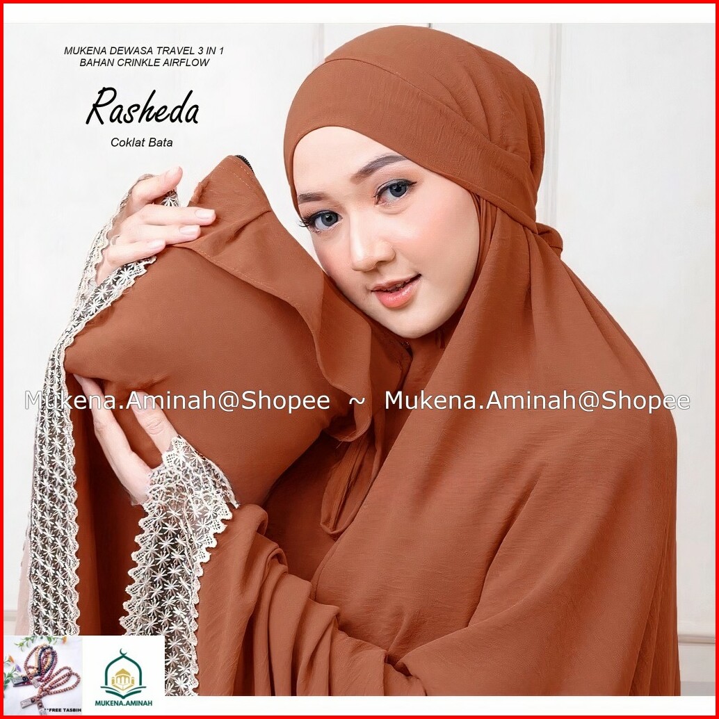 Mukena.aminah Mukena Dewasa Crinkel Airflow 3in1 Jumbo Renda Import Rasheda