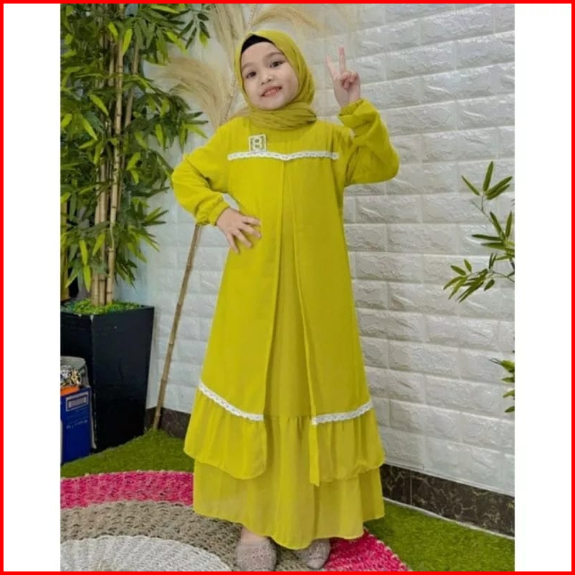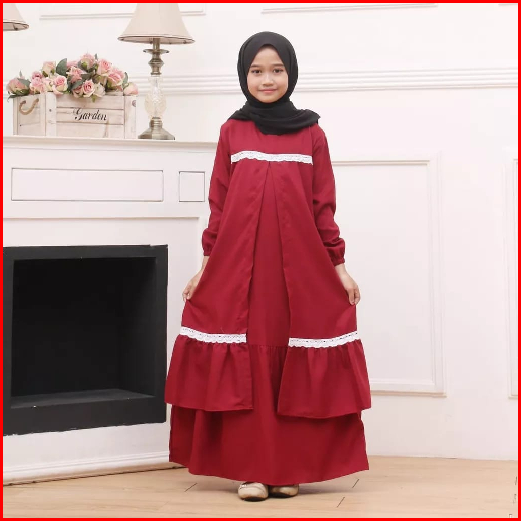 Gamis Anak Perempuan Princess Terbaru Fuji Dress Gamis Anak Muslimah Achsa Aplikasi Renda Usia 5 - 11 Tahun