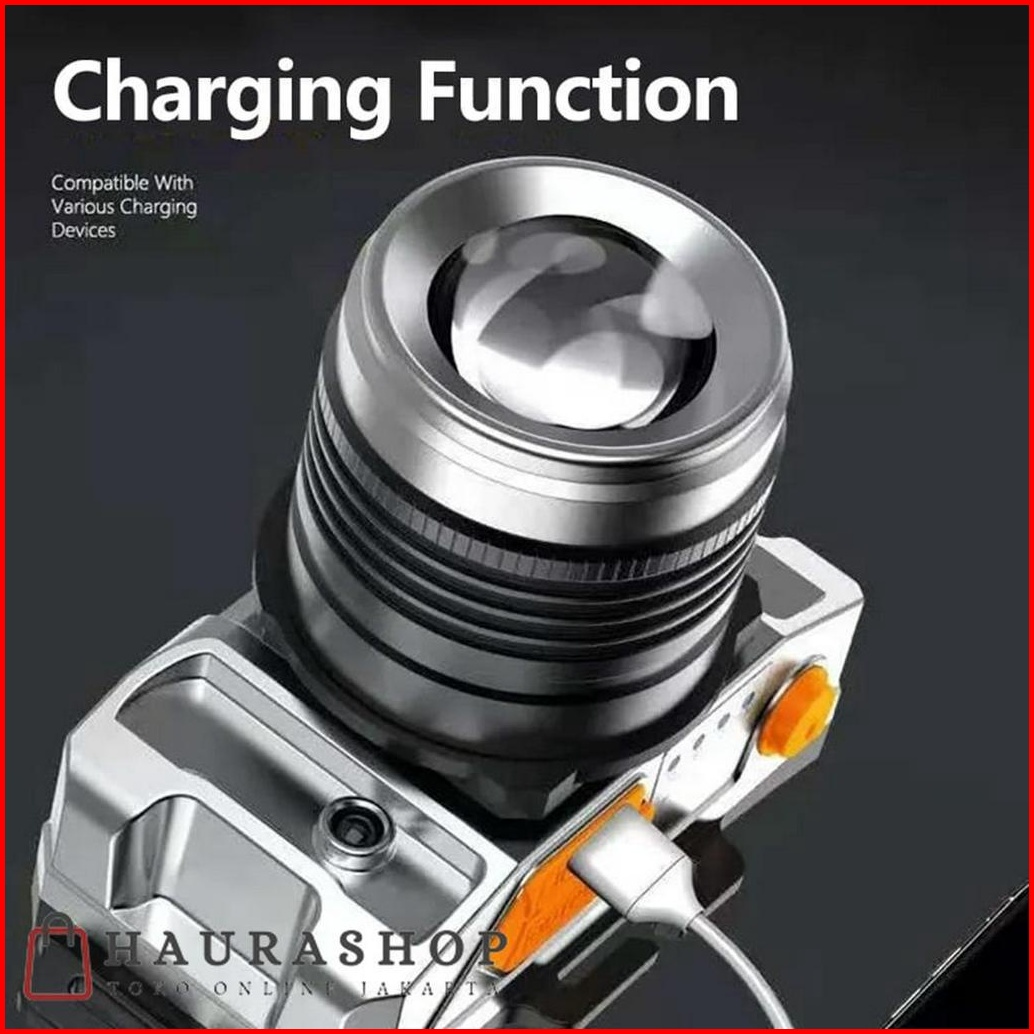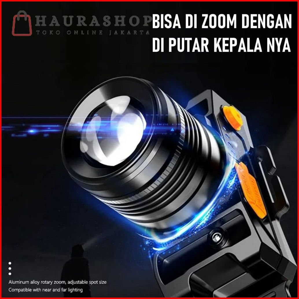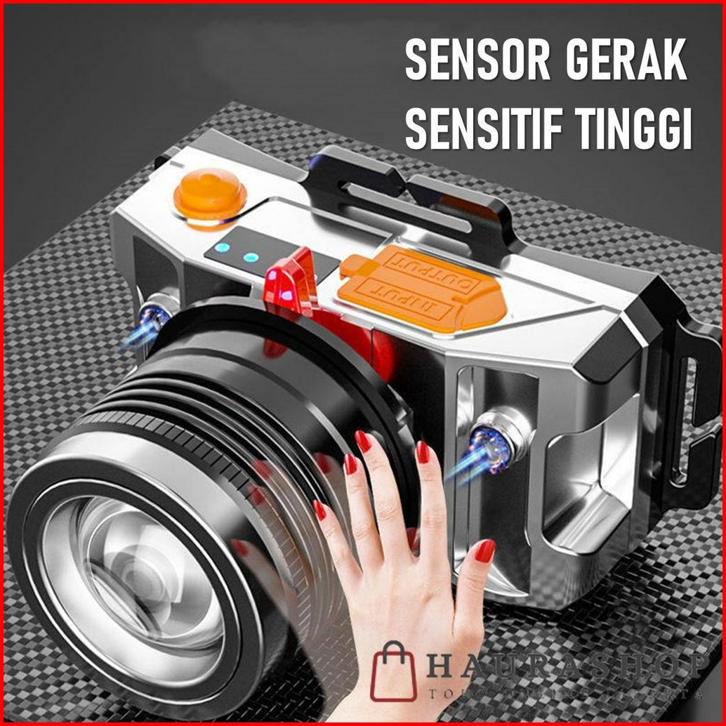 Headlamp Senter Kepala Led 50w Sensor Gerak Zoom Putar Usb Rechargeable