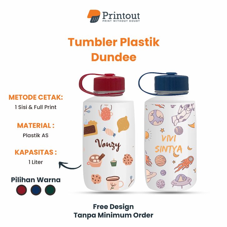PRINTOUT Tumbler Dundee Botol Minum 1 liter Custom Print Nama Botol Minum - Dundee Print UV - Tumbler Dundee - Tempat Mi
