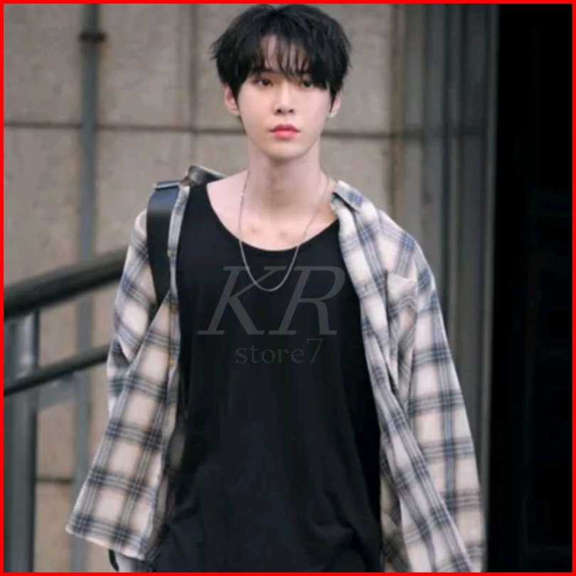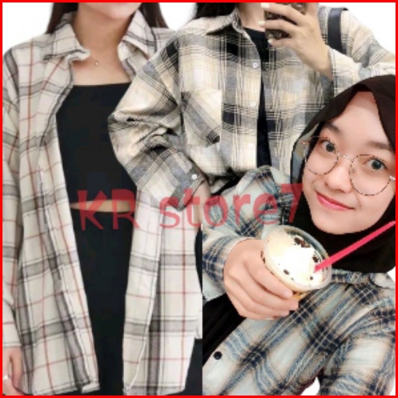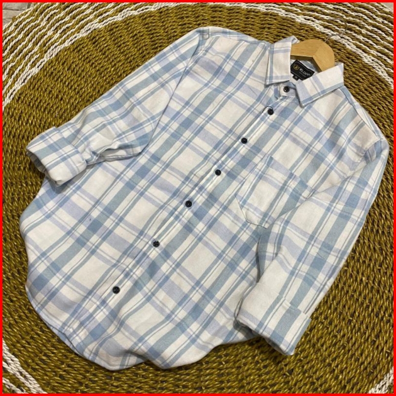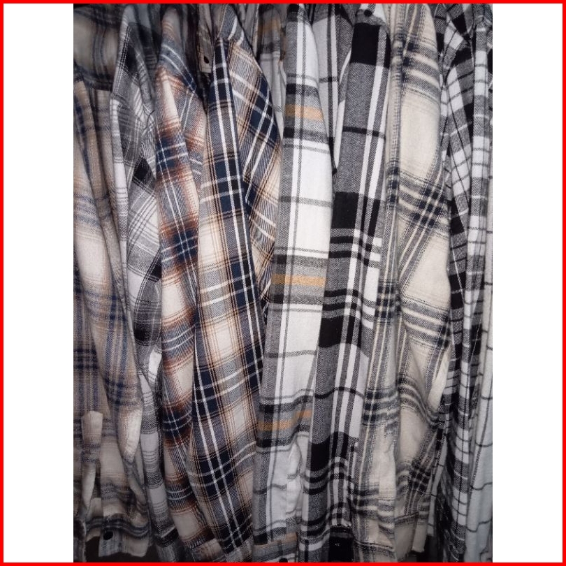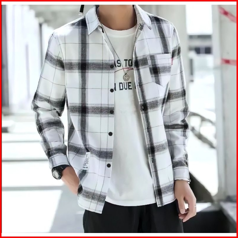 Kemeja Flanel Putih Lengan Panjang Atasan Pria Wanita