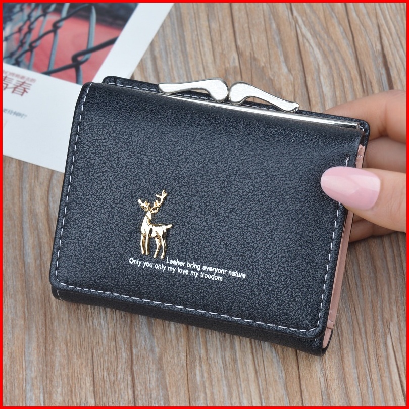 Dompet Lipat Wanita Kecil Kulit Hitam Guada Wa414b5 Korea Mini Slot Kartu Uang Koin Premium Fashion Batam Branded Remaja