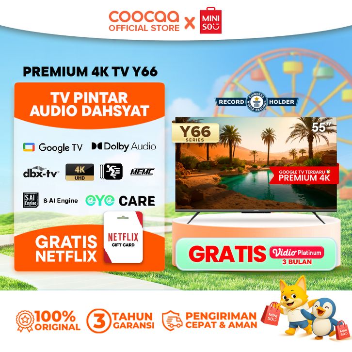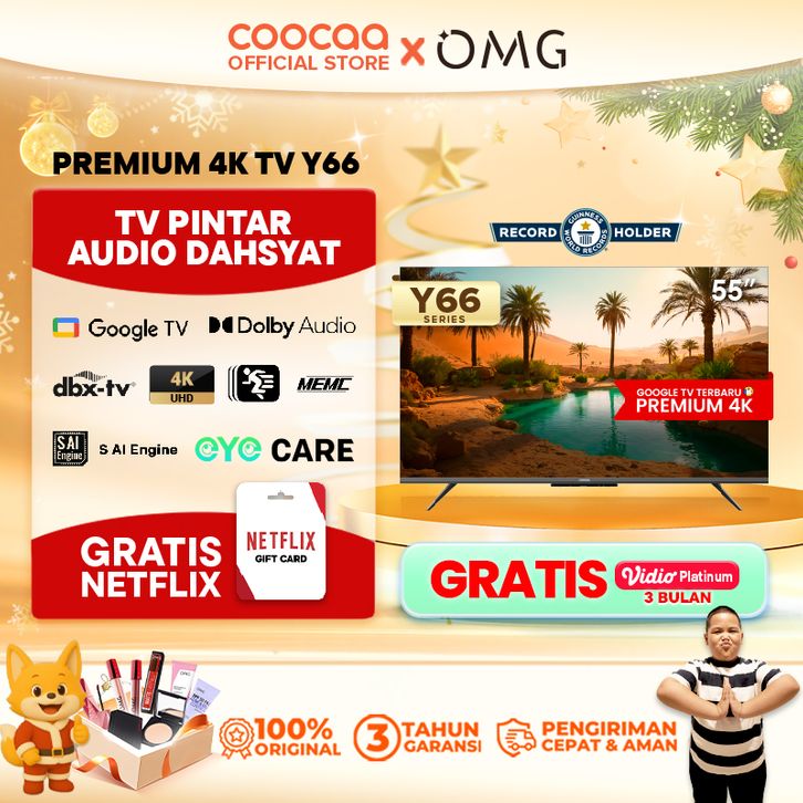 TERBARU COOCAA TV 55 inch Y66 - 4K Google TV - S AI Engine - MEMC - HDR10/HLG - Find My Remote - Eye Care (COOCAA 55Y66)
