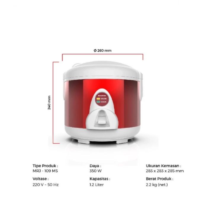 Maspion Rice Cooker MRJ 109 MS Stainless 1,2L MRJ109MS Penanak Nasi 1,2 Liter