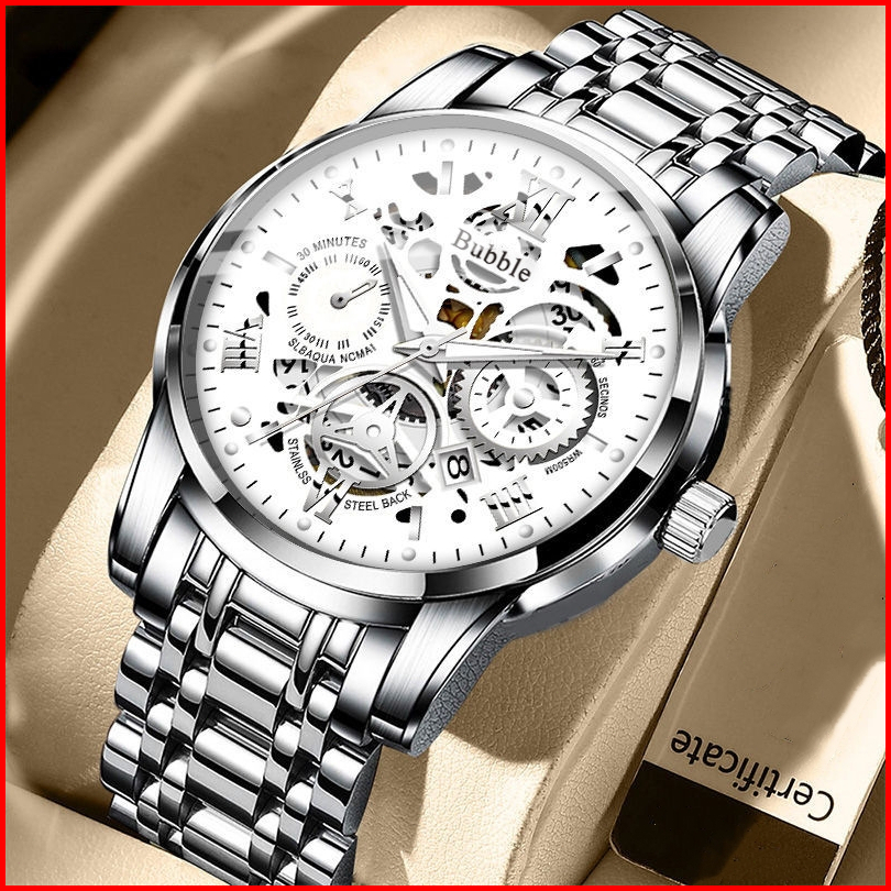 New Sale Jam Tangan Pria Original Display Kuarsa Cahaya Malam Anti Air Tali Stainless Steel Santai Mode Jam Tangan Cowok