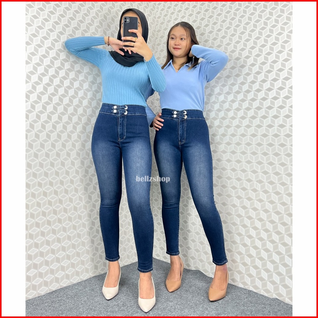 Celana Highwaist Wanita Jeans Skinny Stretch Tint Brown Kekinian Premium Luna