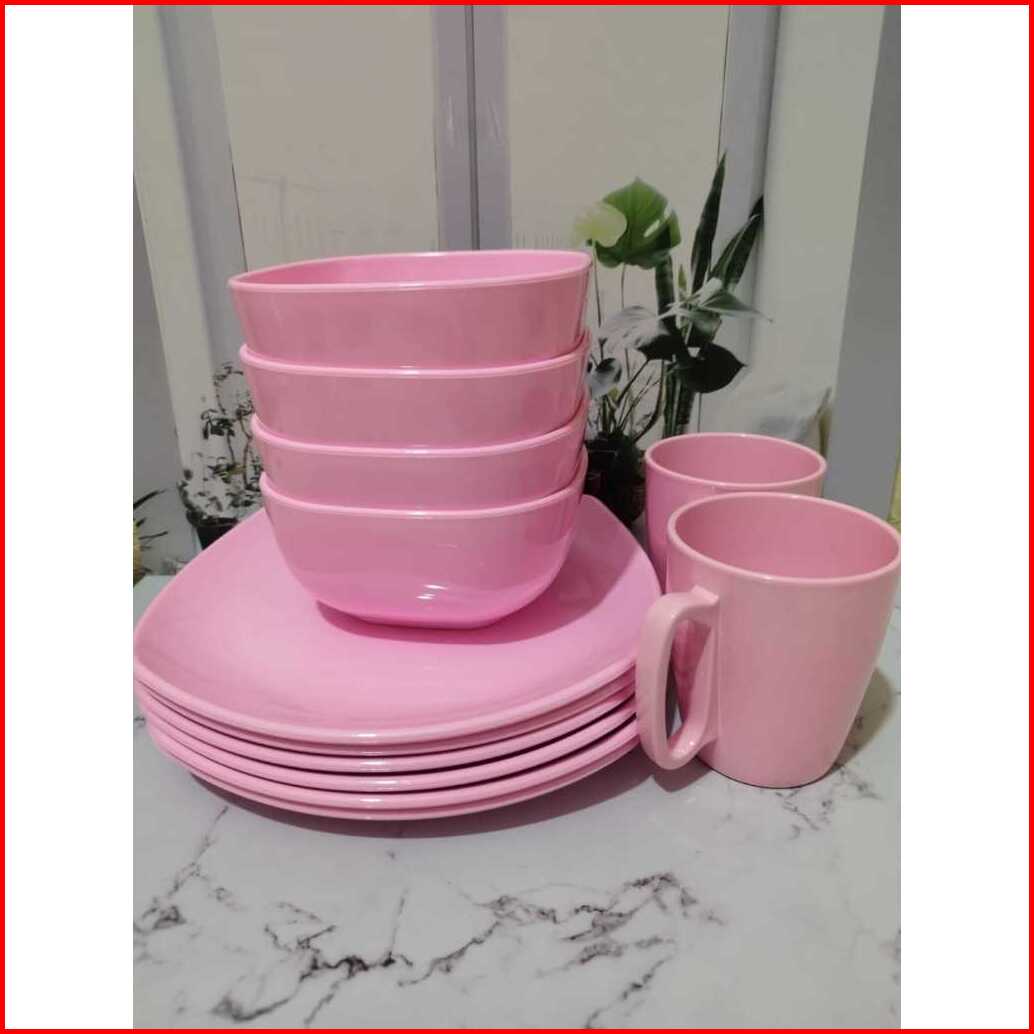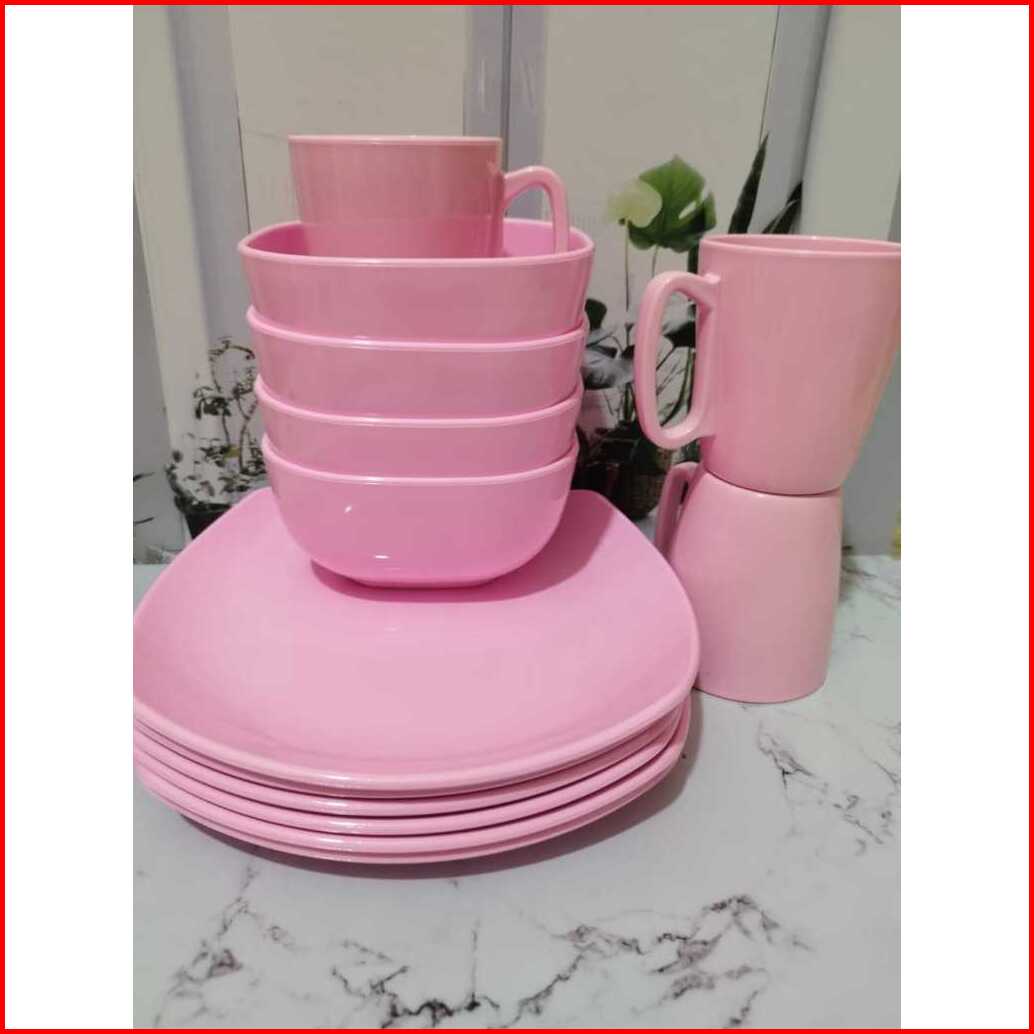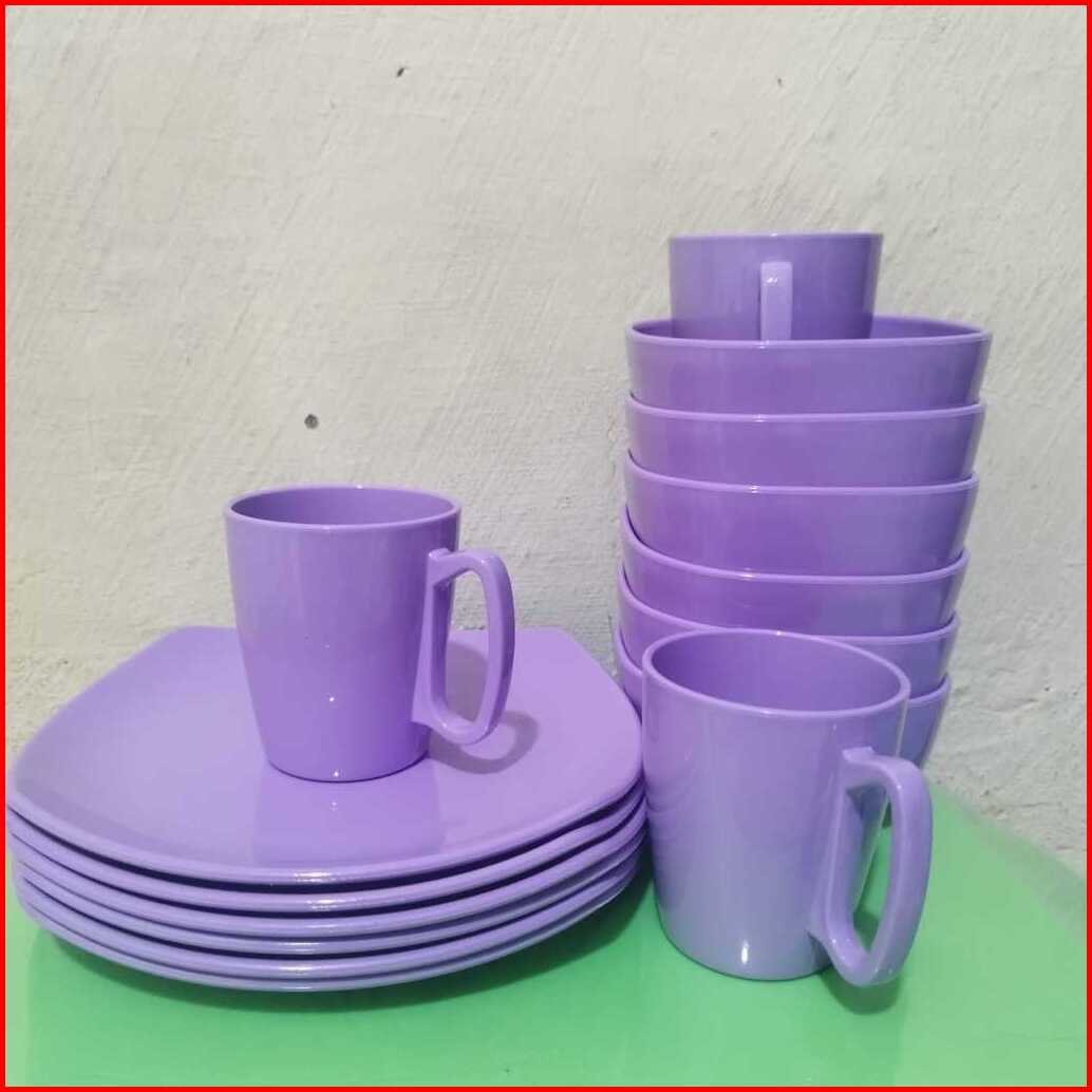 6 Pcs 1 Lusin Set Piring Mangkuk Dan Gelas Melamin Dinnerware