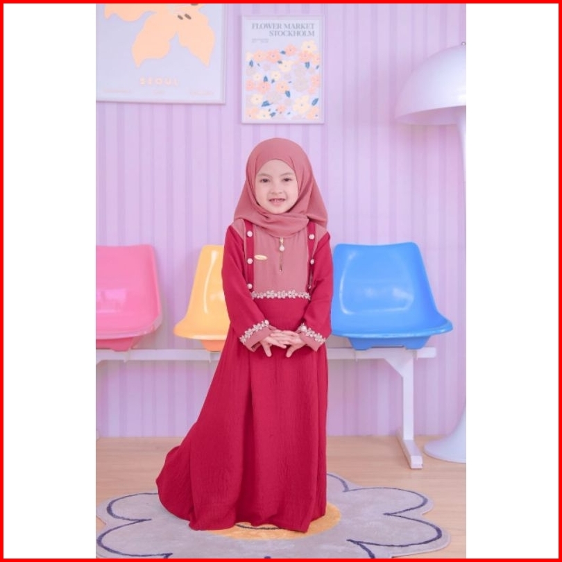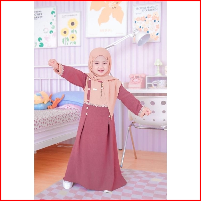 Helwa Syari Kids Set Khimar Gamis Anak Perempuan Usia 6bulan-10 Tahun Terbaru Bahan Cringkle