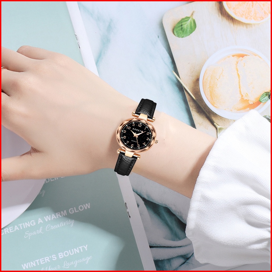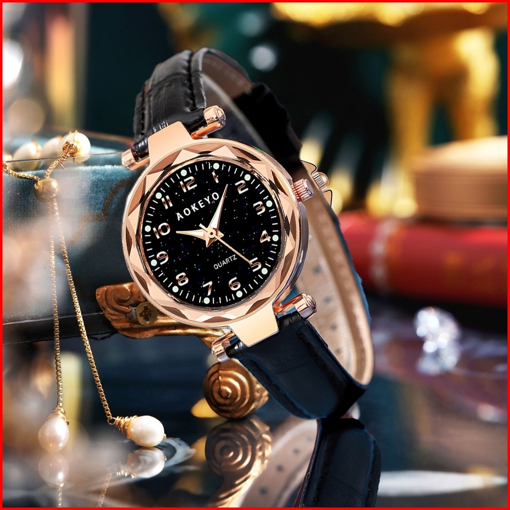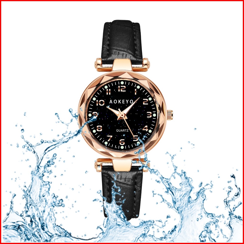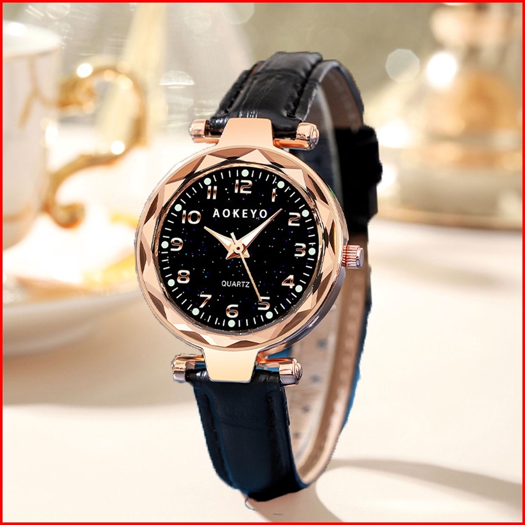 Aokeyo W157 Jam Tangan Wanita Original Santai Tahan Air Langit Berbintang Hitam Modis Jam Tangan Wanita Free Box Kartu G