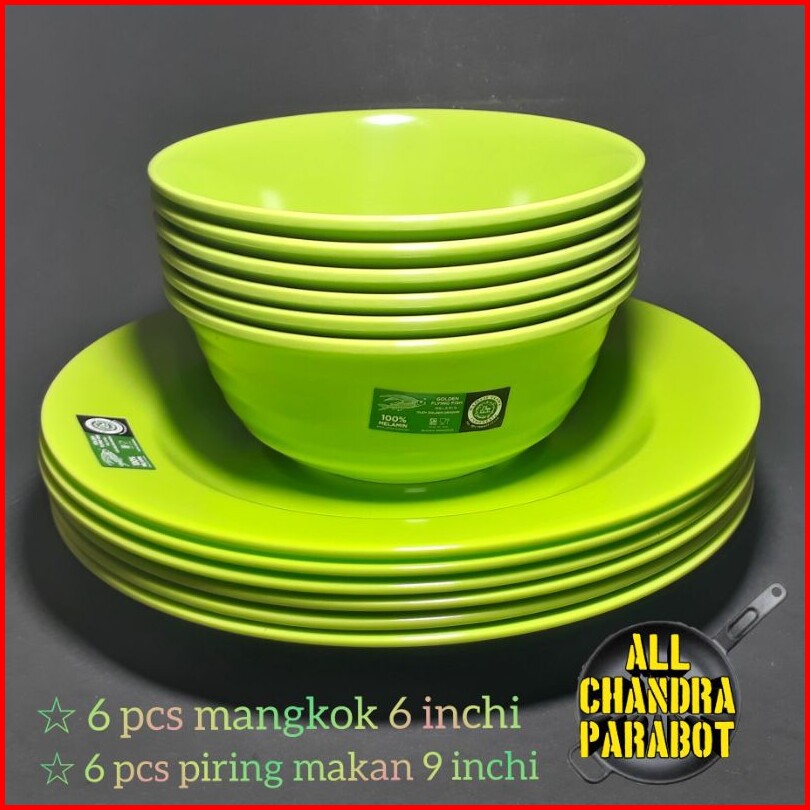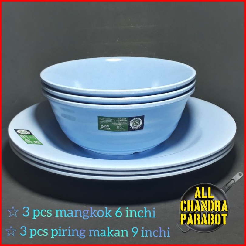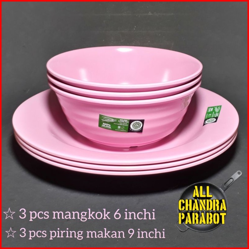 Piring Mangkok Melamin Ware Golden Flying Fish Isi 12 Pcs Dan Isi 6 Pcs
