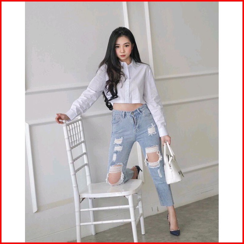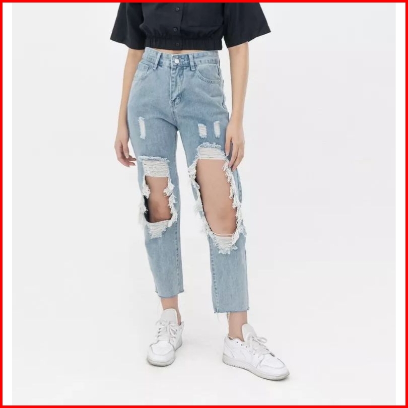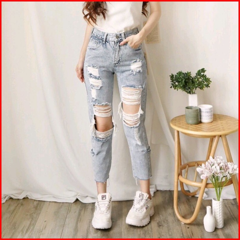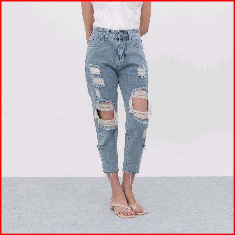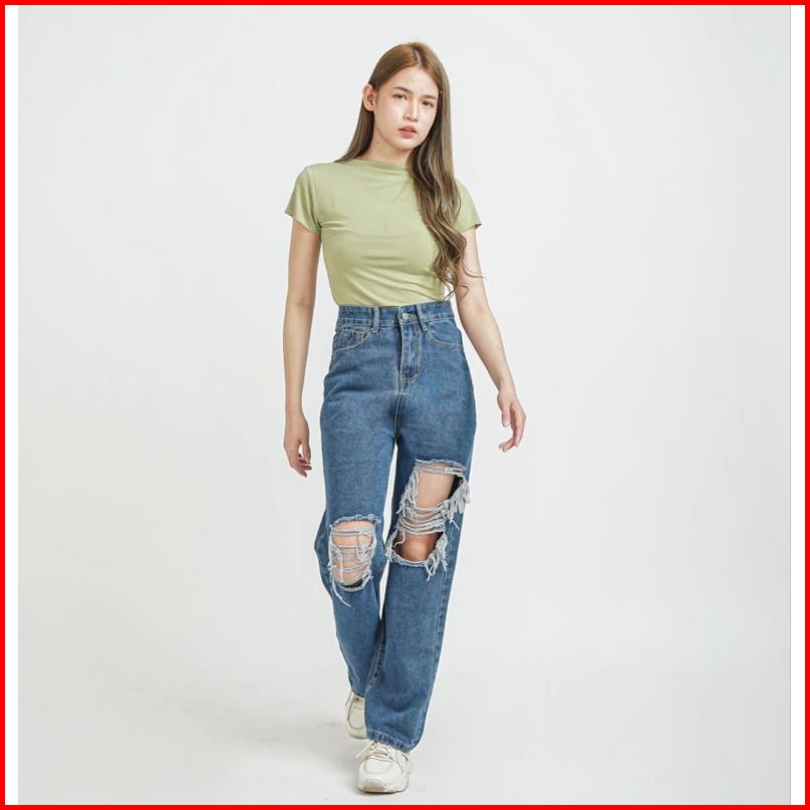 Gc 0133 Ruby Highwaist Ripped Jeans Celana Jeans Wanita
