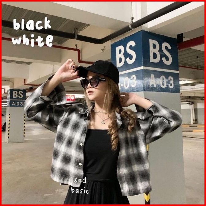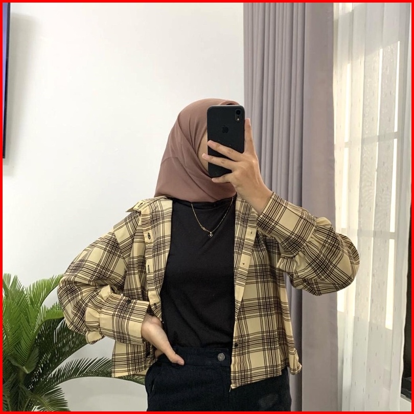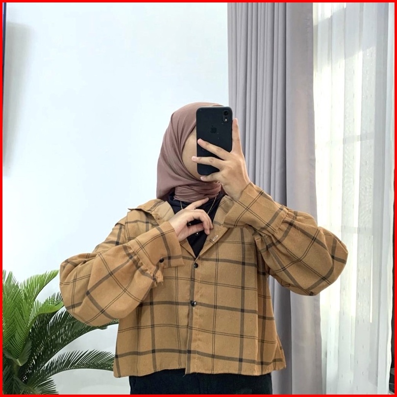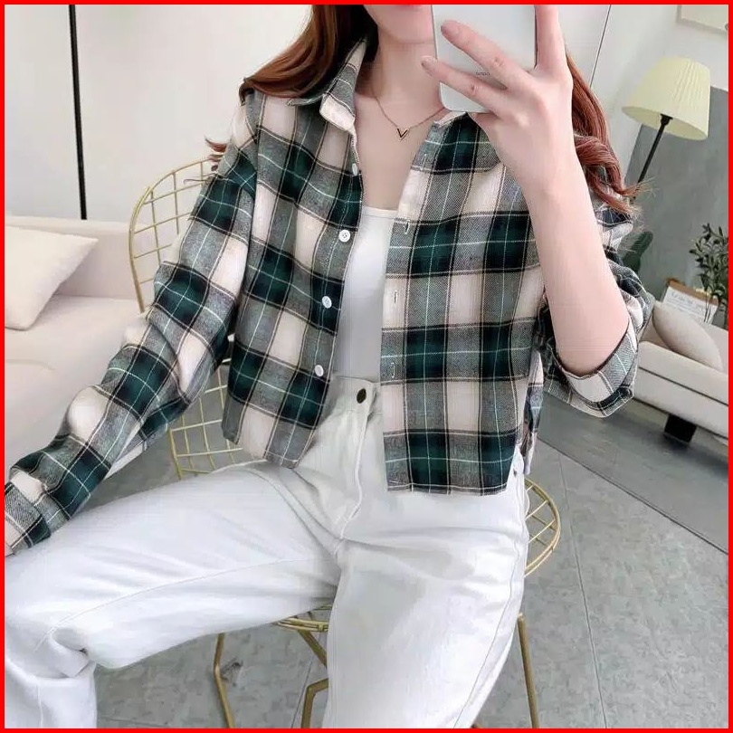 Kemeja Crop Tartan Kemeja Wanita Kotak Oversize Oversize Flanel Tartan Crop Tartan Shirt