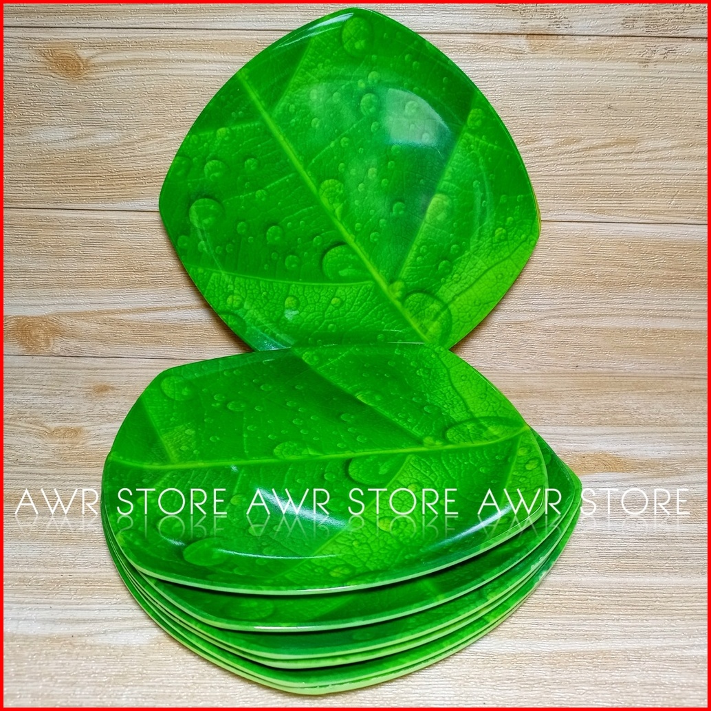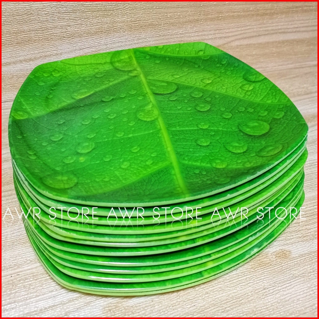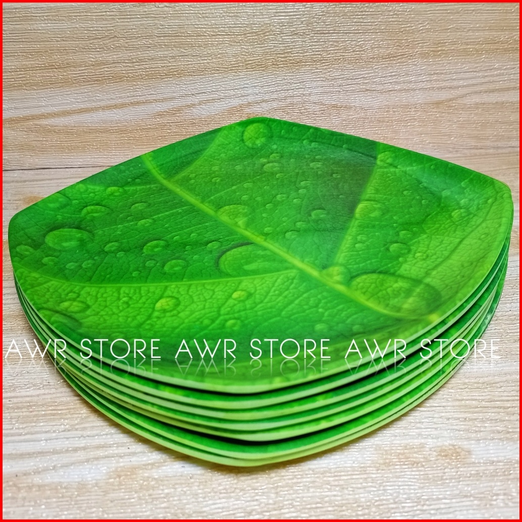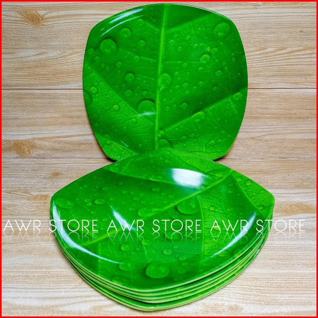 Termurah 6pcs Piring Kotak Datar 9inc Melamin Motif Daun Foodgrade Dan Sni