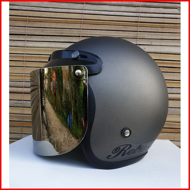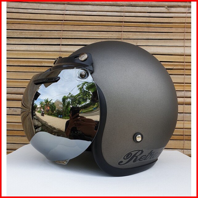 Helm Bogo Retro Vespa Warna Silver Doff Untuk Wanita Pria Cewek Cowok Dewasa
