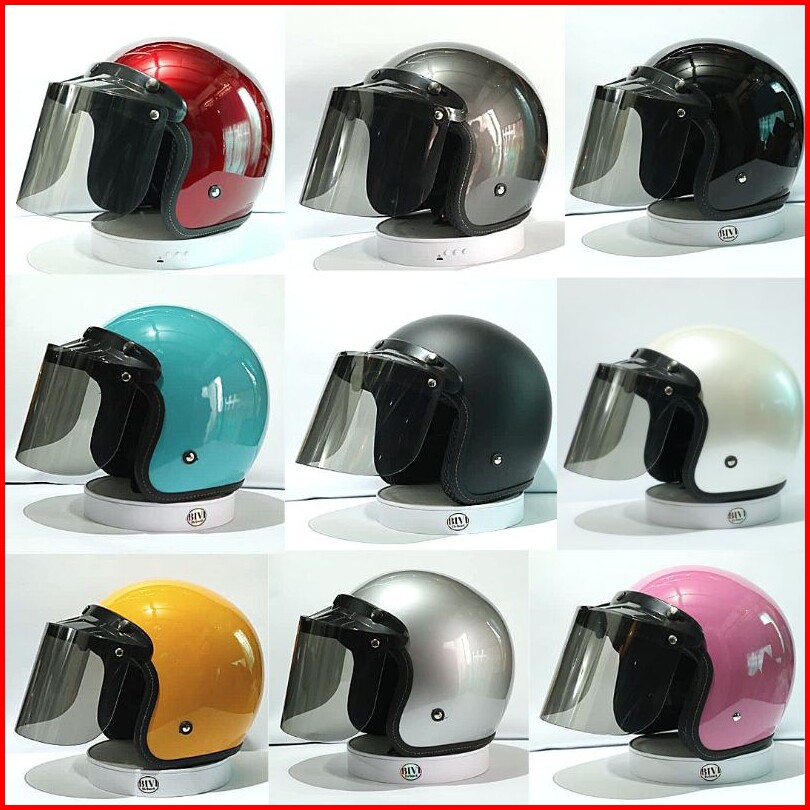 Helm Bogo Retro Polos Kaca Datar Sni - Dewasa Pria Wanita