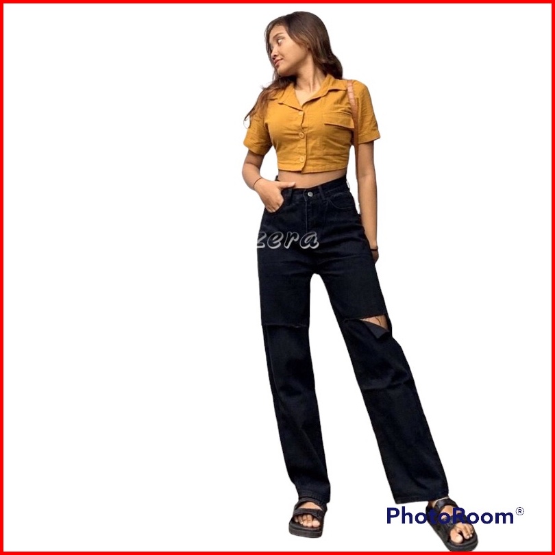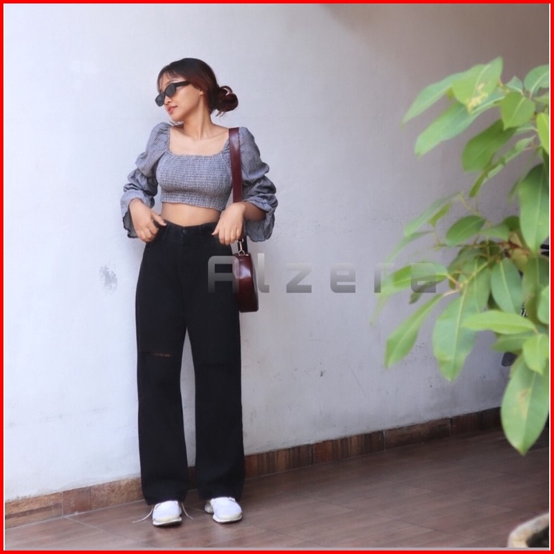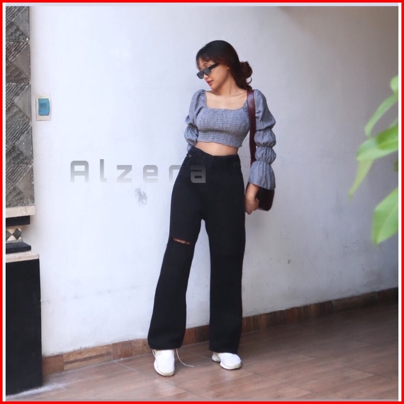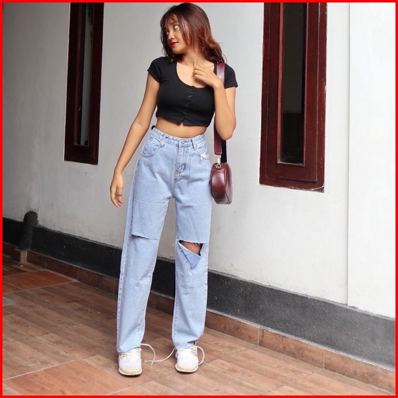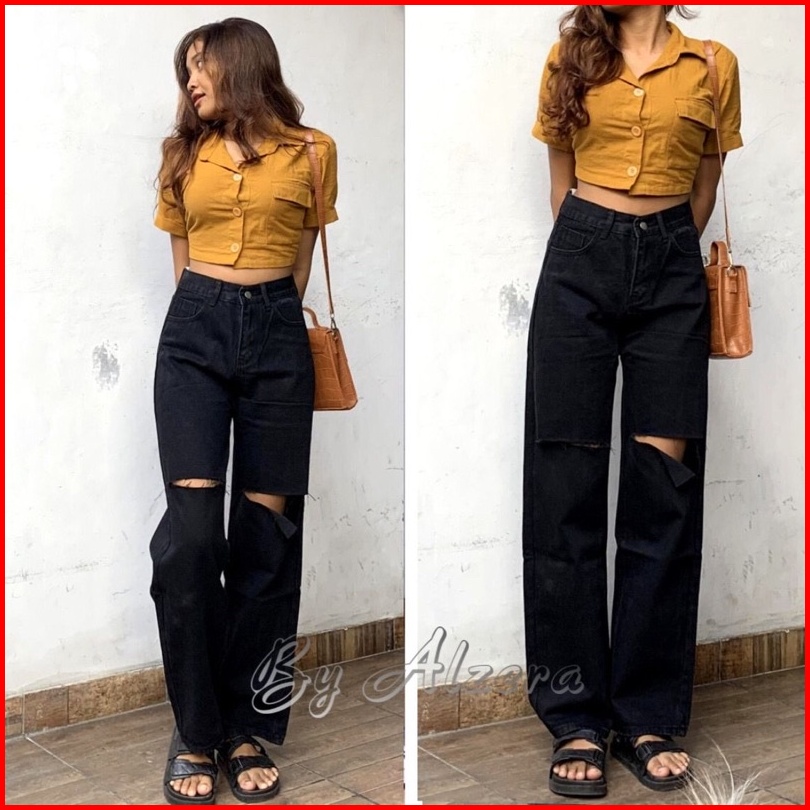 Celana Jeans Kulot Wanita Sobek Tembus Kekinian By Alzera