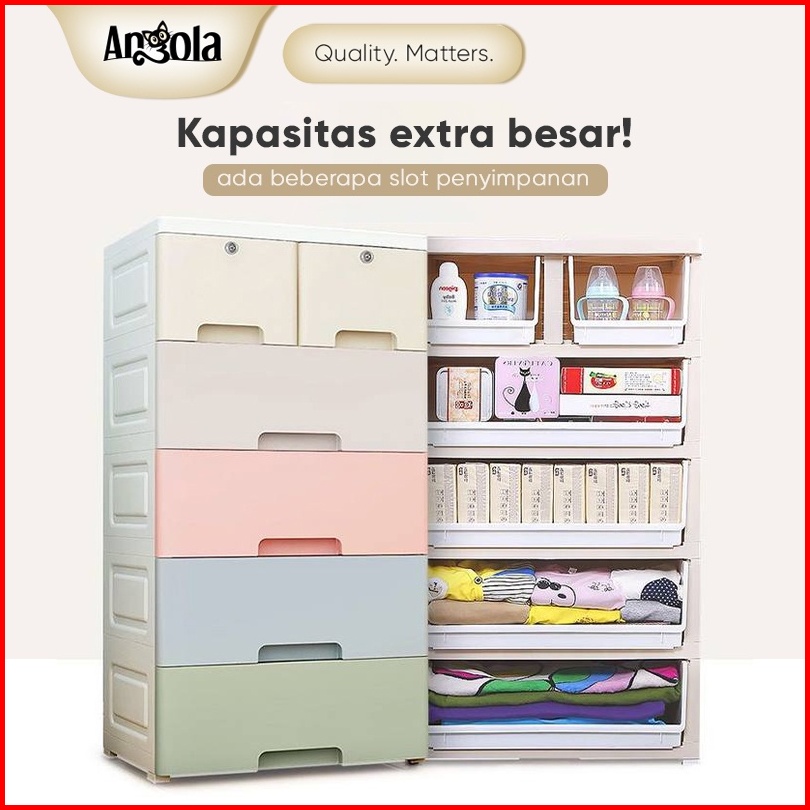 Angola Lemari Plastik Pakaian 5 Tingkat C68 Laci Susun Cabinet Plastik Rak Susun Penyimpanan Baju