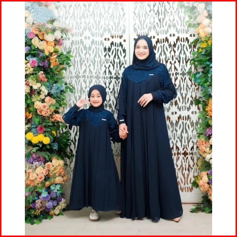 Inara Couple Mom And Kids Gamis Syari Set Khimar Ibu Dan Anak S.m.l.xl Gamis Couple Bahan Ceruty
