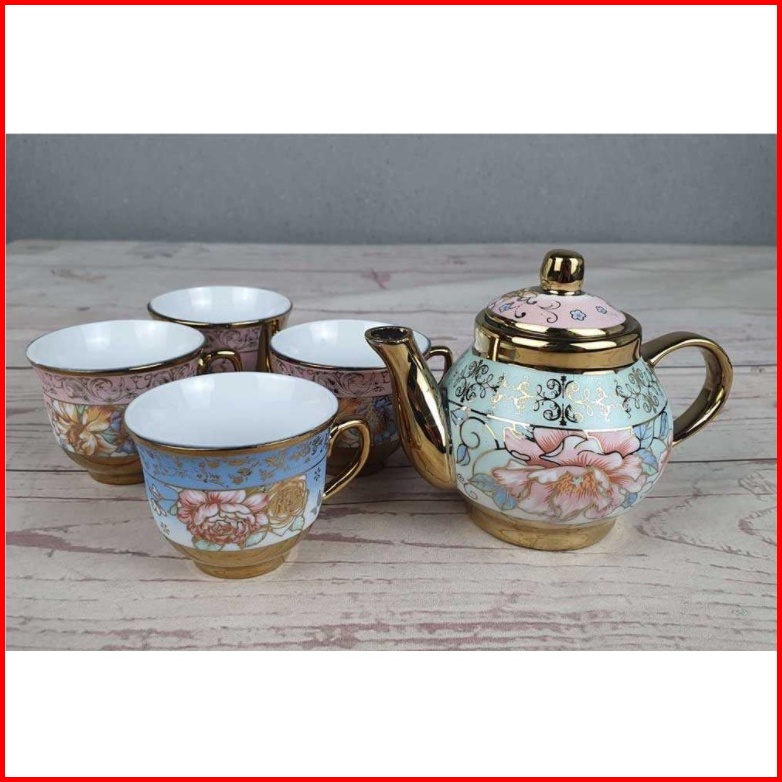 Sunfili Cangkir Teko Keramik Set 4 Cups 1 Pot European Style - B140