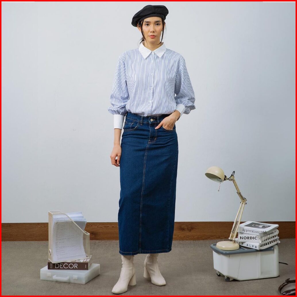 Hijabchic Marina Denim Skirt - Rok Jeans Muslim Span Ban Pinggang