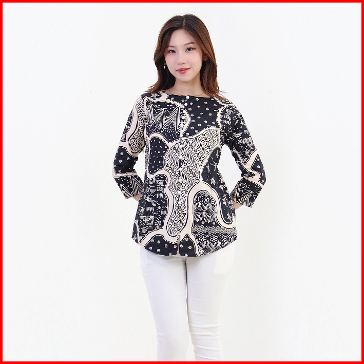 Atasan Batik Wanita Lengan Panjang Katun Stretch