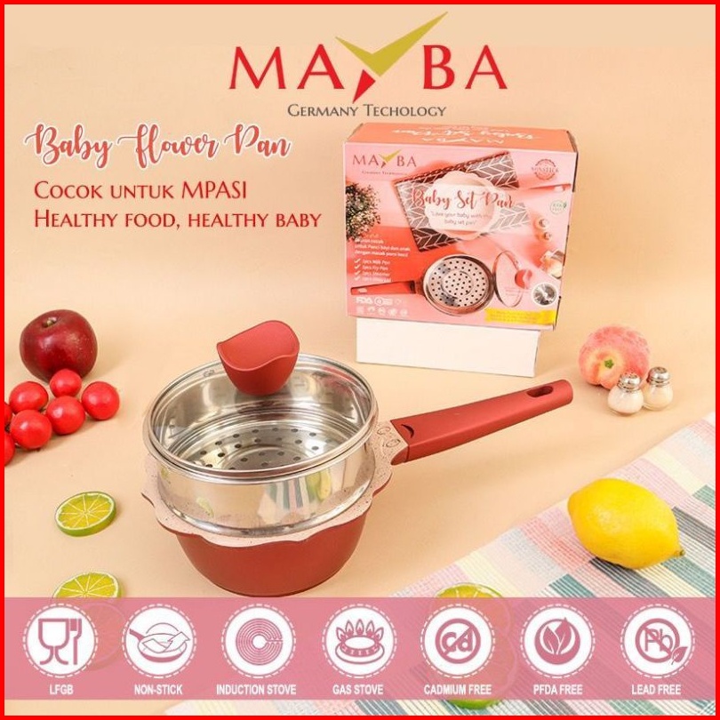 Panci Set Mayba Baby Pan Merah 4 Pcs Perlengkapan Bayi Peralatan Masak Anak