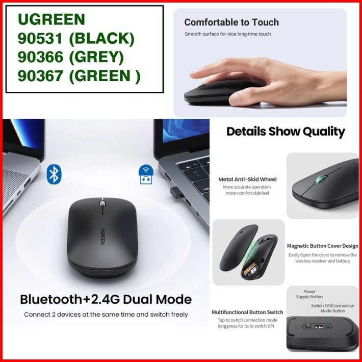 Ugreen Mouse Wireless Bluetooth Usb Mini Receiver 2.4ghz 4000dpi Silent Click Dual Mode - Wonderland Store Surabaya