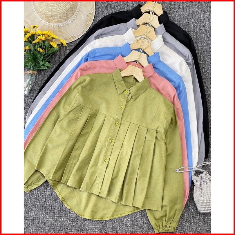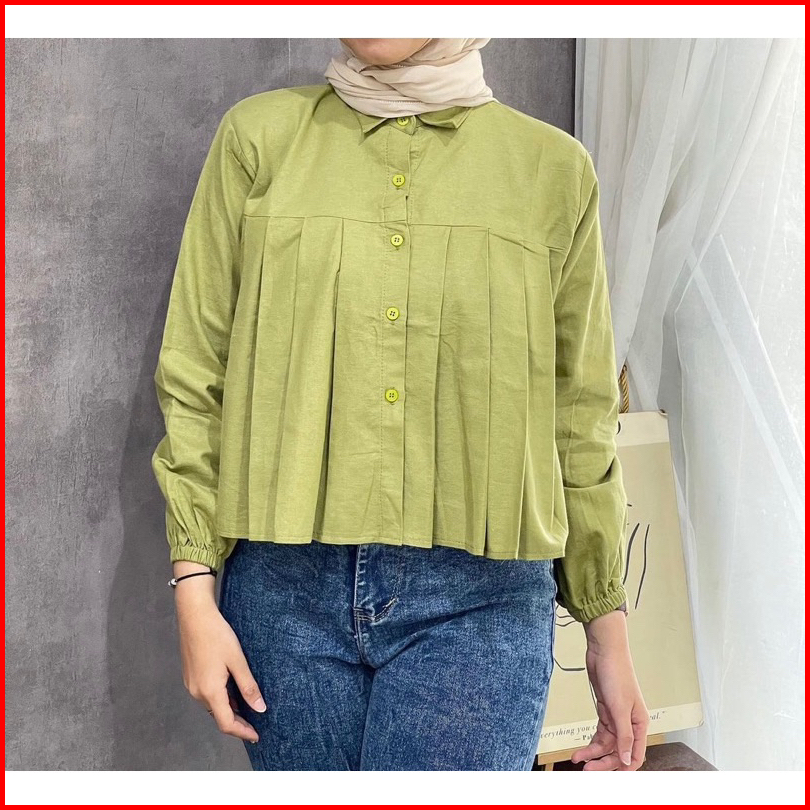 Herra Blouse Crop Linen Blouse Lipit Depan