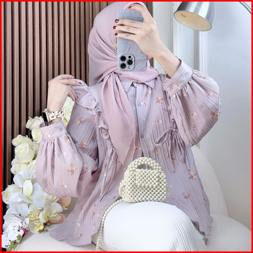 Jenna Blouse Ruffle Vintage Motif Flowers Korean Look By.dhevia Id Blouse Koleksi Ramadhan Terbaru Blouse Ruffle Wanita
