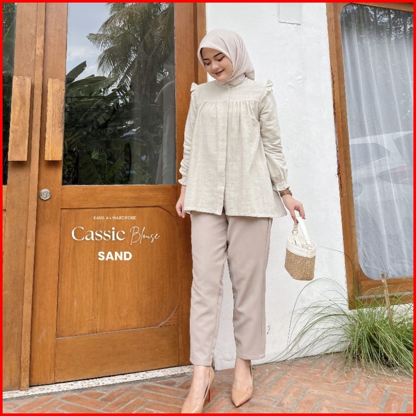 Kamila - Cassie Blouse Baju Atasan Panjang Linen Basic Kancing Wanita Casual